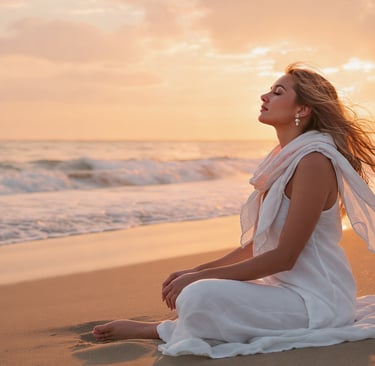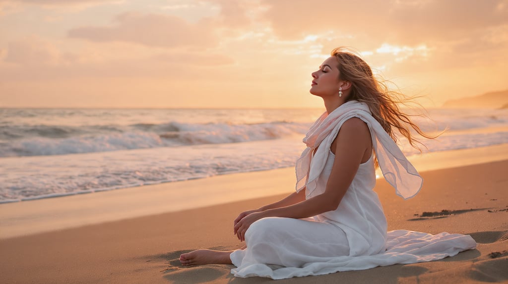 Imagine lying on warm sand, feeling your breath synchronize with the tide.